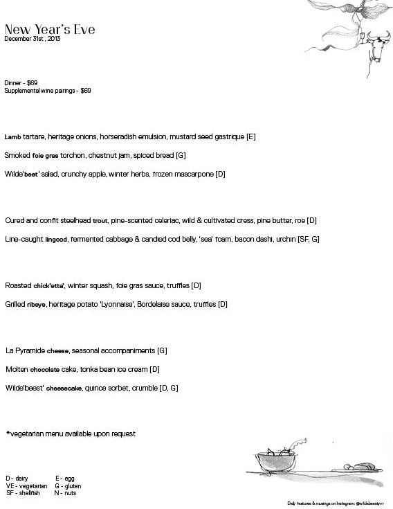 Our special NYE menu