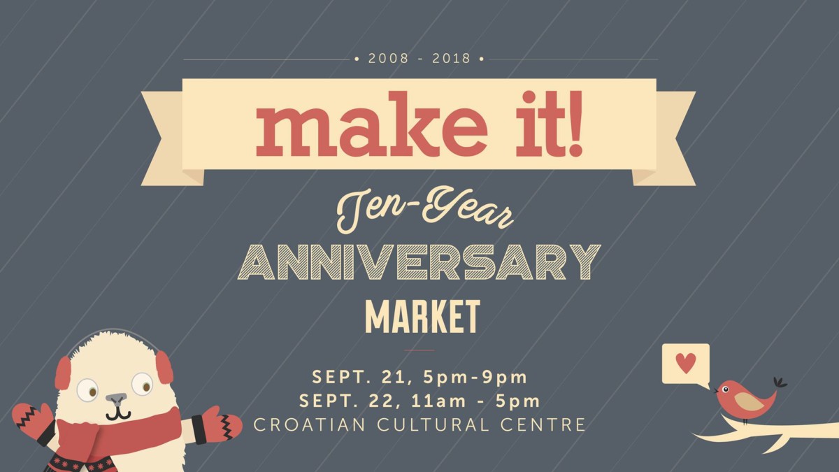 Make It is turning 10 years old this September! To celebrate, we’re hosting a throwback-style Make It at the Croatian Cultural Centre September 21-22. Lots of your long-time favourite Makies will be there, and (of course) we’ll have great tunes, a bar, and some fantastic food trucks. We’ll also have some amazing door prizes! We’re so grateful to the local community for supporting us and our hard-working Makies all these years. Thank you for making the last decade incredible 💖